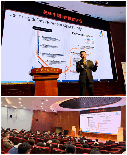 座谈会结束后,TEKsystems公司随即在实验楼A105开展了精彩的企业宣讲活动。杨璇波与现场学生进行了积极热烈的互动,详细解答了同学们关于行业发展前景、具体岗位任职要求、职业晋升路径及人才成长规划等方面的疑问,现场氛围十分热烈。